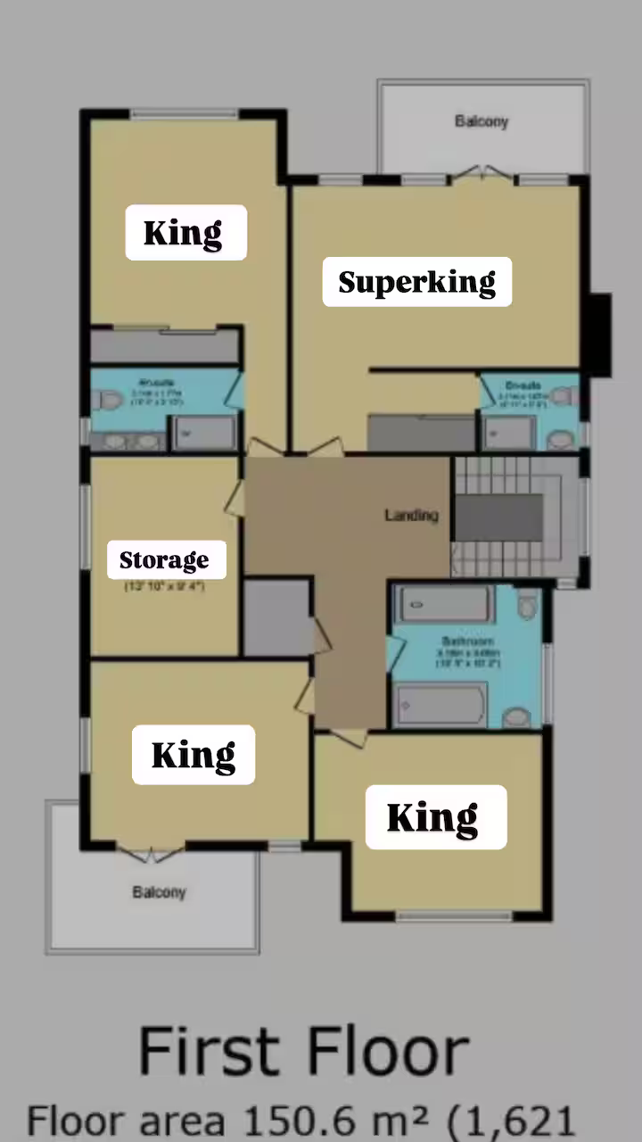 1 x king en suite room with balcony